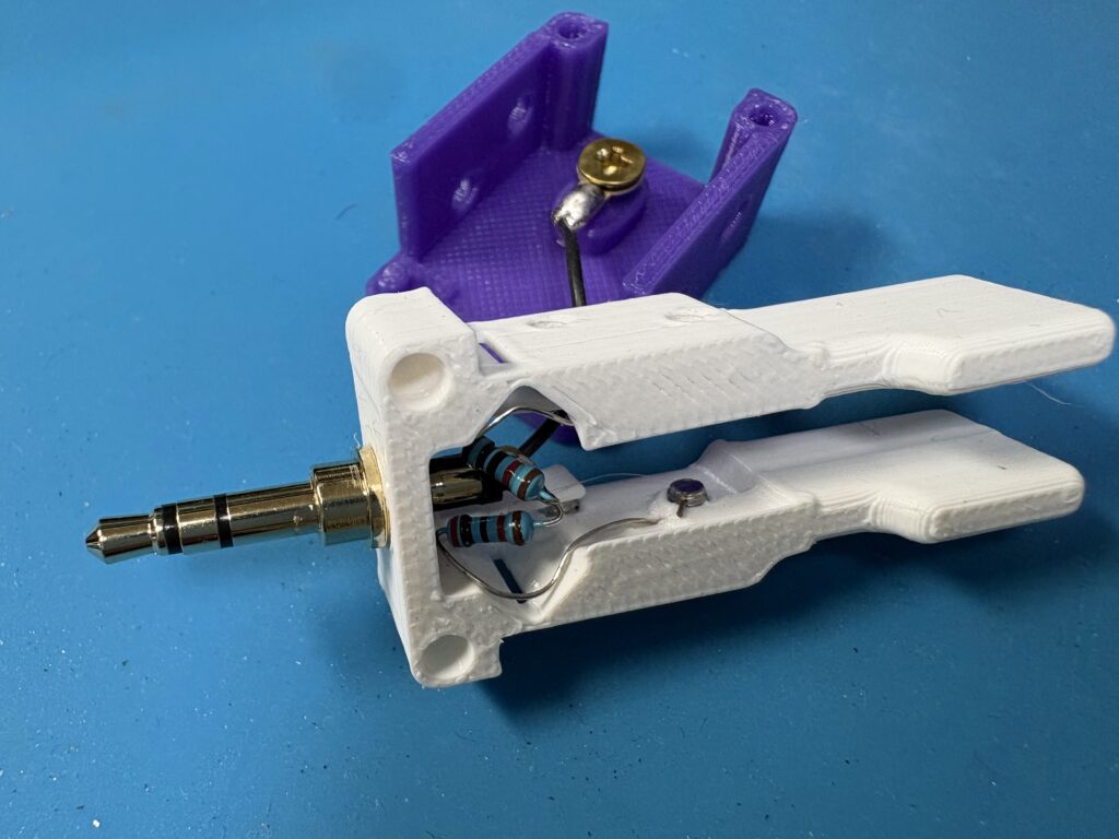 抵抗のリードを切って、コネクタに半田付け。ちょっと実用には厳しいかもしれないが、単点と長点を送れるではないか!