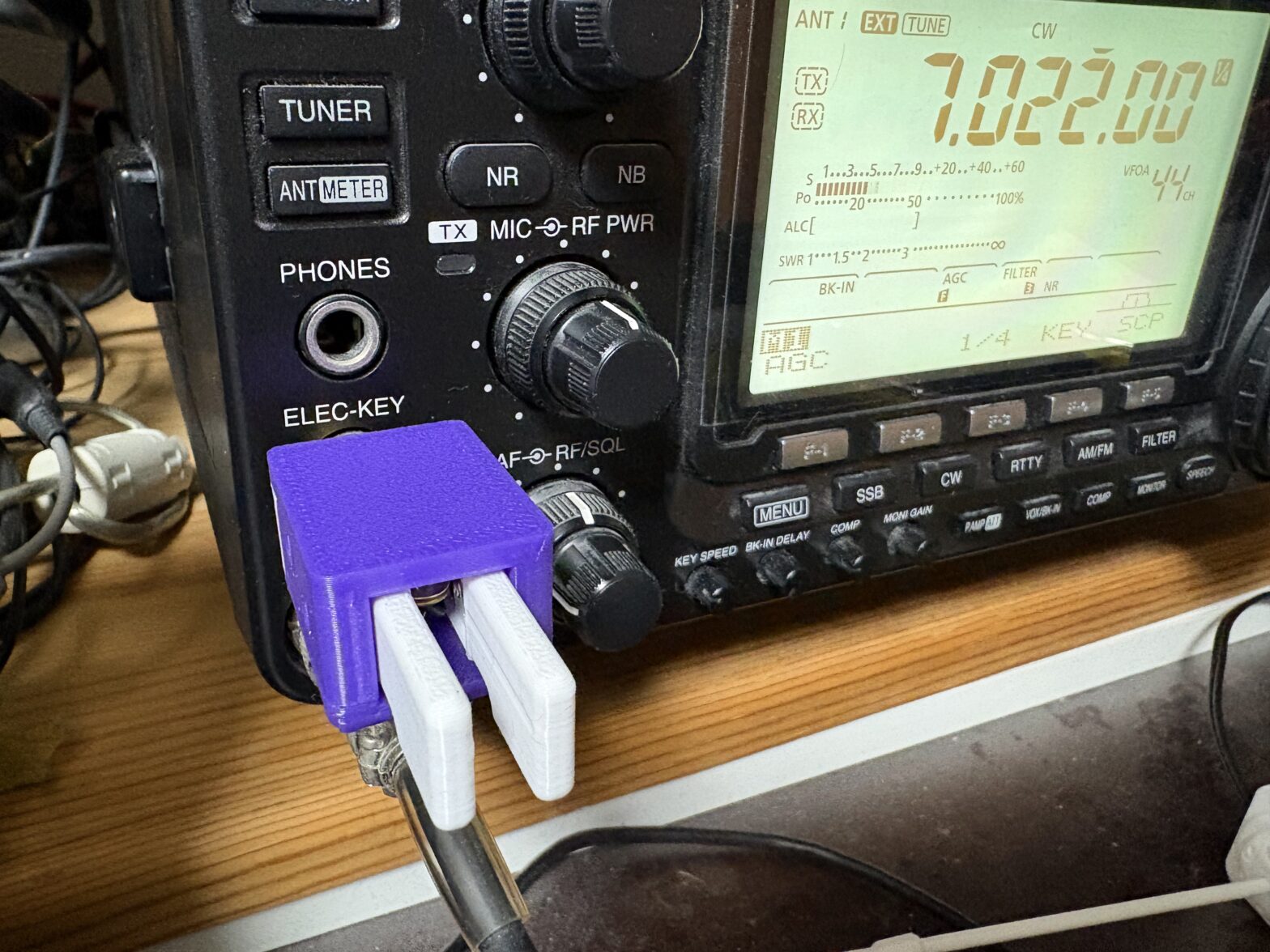 UV-K5,K6などソフトウェアを書き替えて、CWに対応させて使う小型パドルがAliexpressほかで売られている。CWは得意で無いので出ることは少ないし、パドルを使うことはないのだが買ってIC-7410に接続してみた。